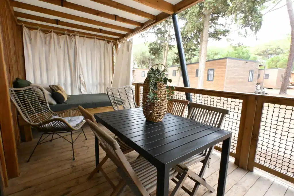 En cohérence avec la nature, intégré dans la pinède, sa terrasse spacieuse et son grand bed sera votre pièce à vivre préférée ! Retrouvailles familiale, sieste ou contemplation, profitez de vos moments hors du temps.